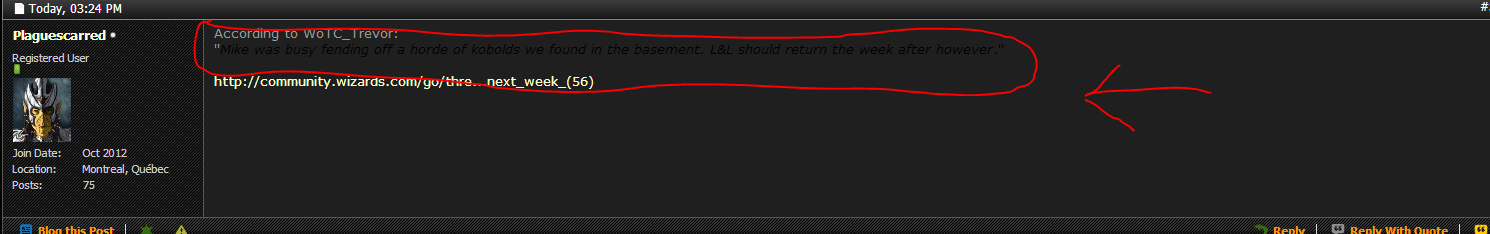 Err... just out of curiosity and because I had 3 minutes of my life to waste, I tried the Reborn, Legacy, and Mobile skins, and your posts were appearing the same as everyone else's (black on white in the Reborn skin). Your most recent post is grey on white in the Reborn theme. I tried with Firefox, IE 8, and Chrome.I don't understand. Is the background still black for you ? I thought it changed to grey for everyone after EnWorld got refurbished...