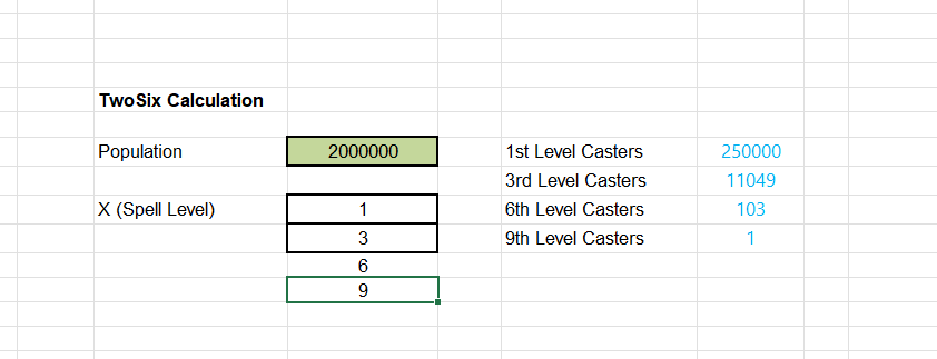 D&D 5E (2014) - Dnd World Demographics Excel Tool - Rarity of Classes and Spells