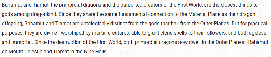 “Bahamut and Tiamat are ontologically different from the gods that hail from the Outer Planes”.