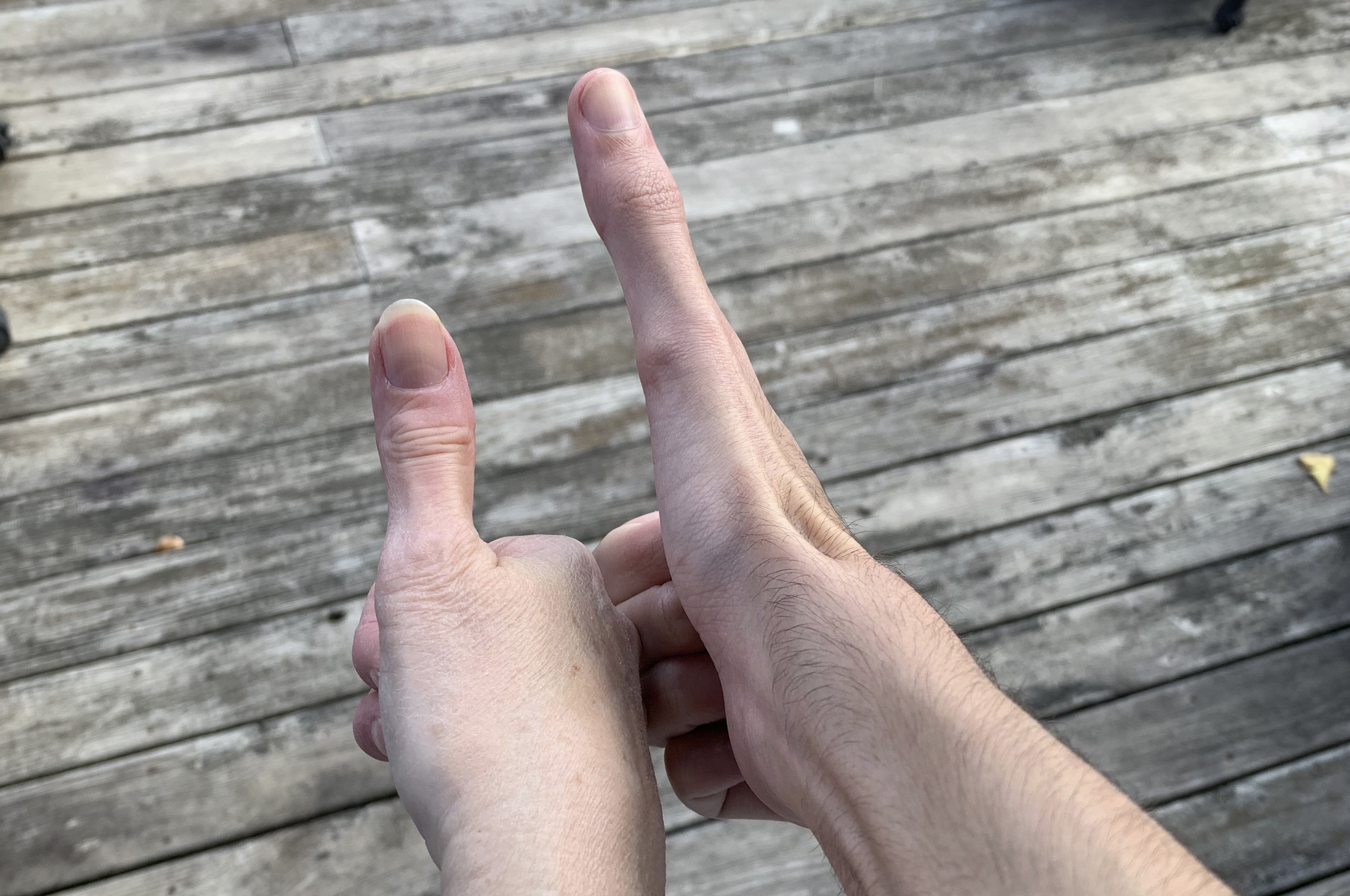 Hmm, that's news to me. I don't think many people would be looking at their thumbs. If they were, that wouldn't set them apart as a different species. I mean, look at this person's thumb:Except, apparently if you look at their thumbs which apparently may have been better for holding spears and such but not as good at fine manipulation.