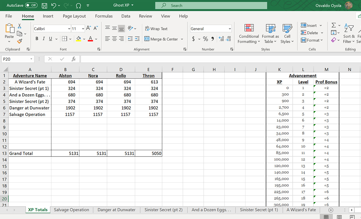 Back in 1E days I had an accountants ledger I used to keep track of XP. Now I use excel and I am not exaggerating that I LOVE making/using spreadsheets.