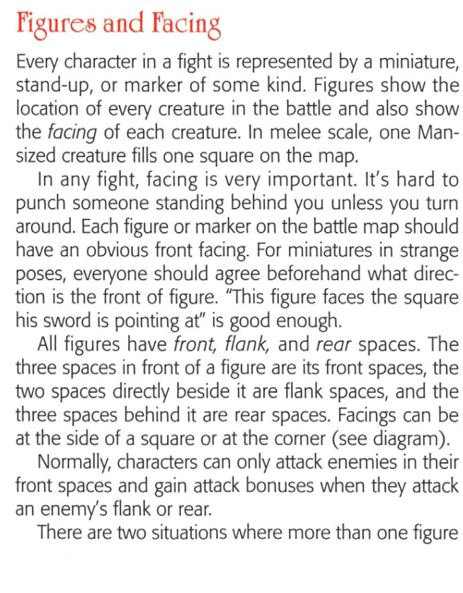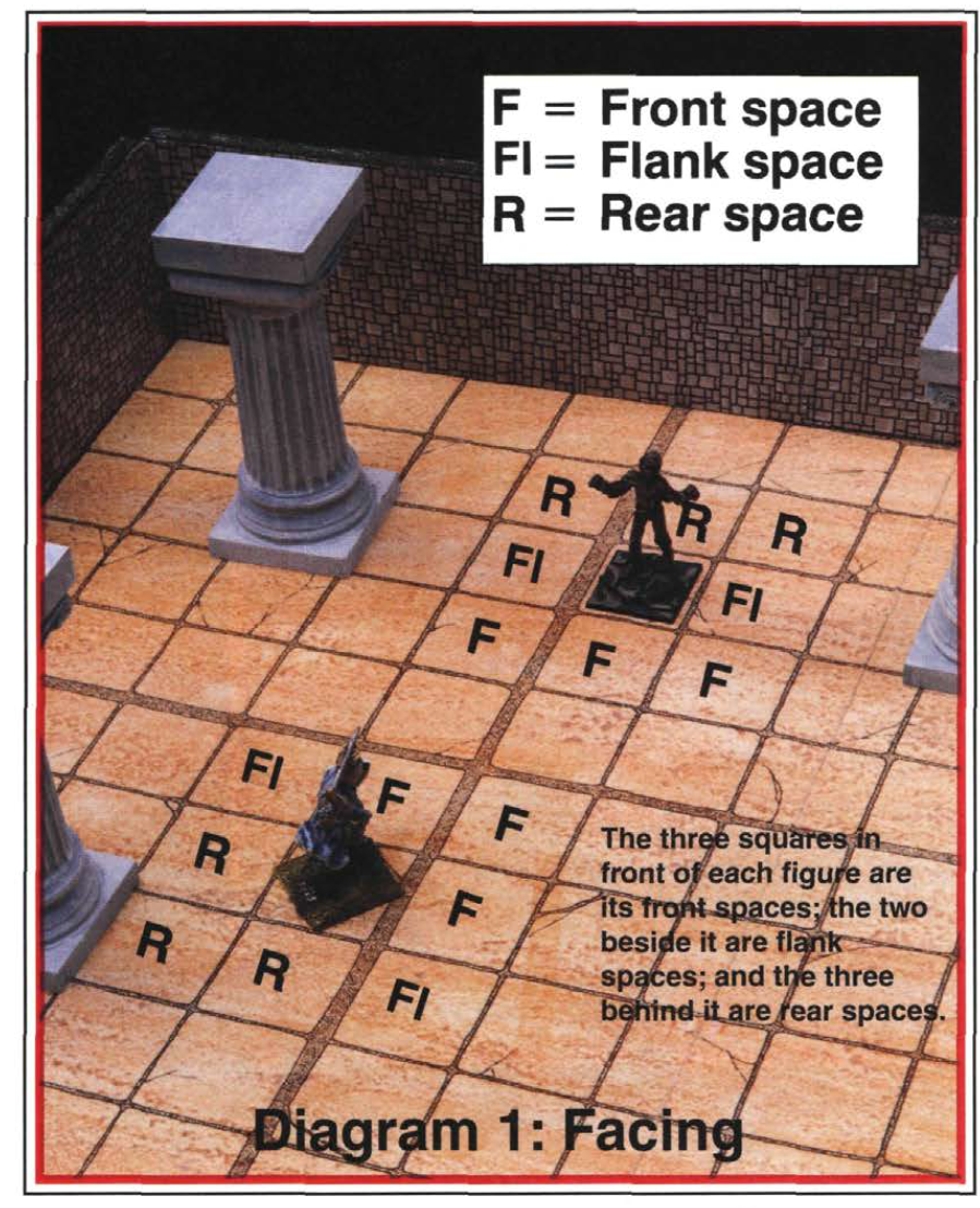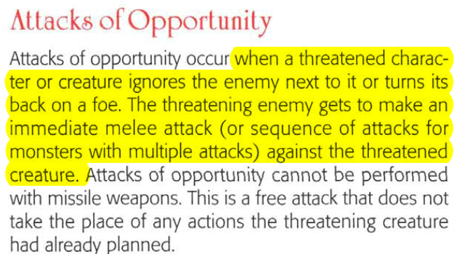 I'm not going digging through 1e stuff but happen to know where it was in 2e well enough to trivially pull it. You only needed to face your mini away from an opponent who threatened you & you got your whole attack chain.