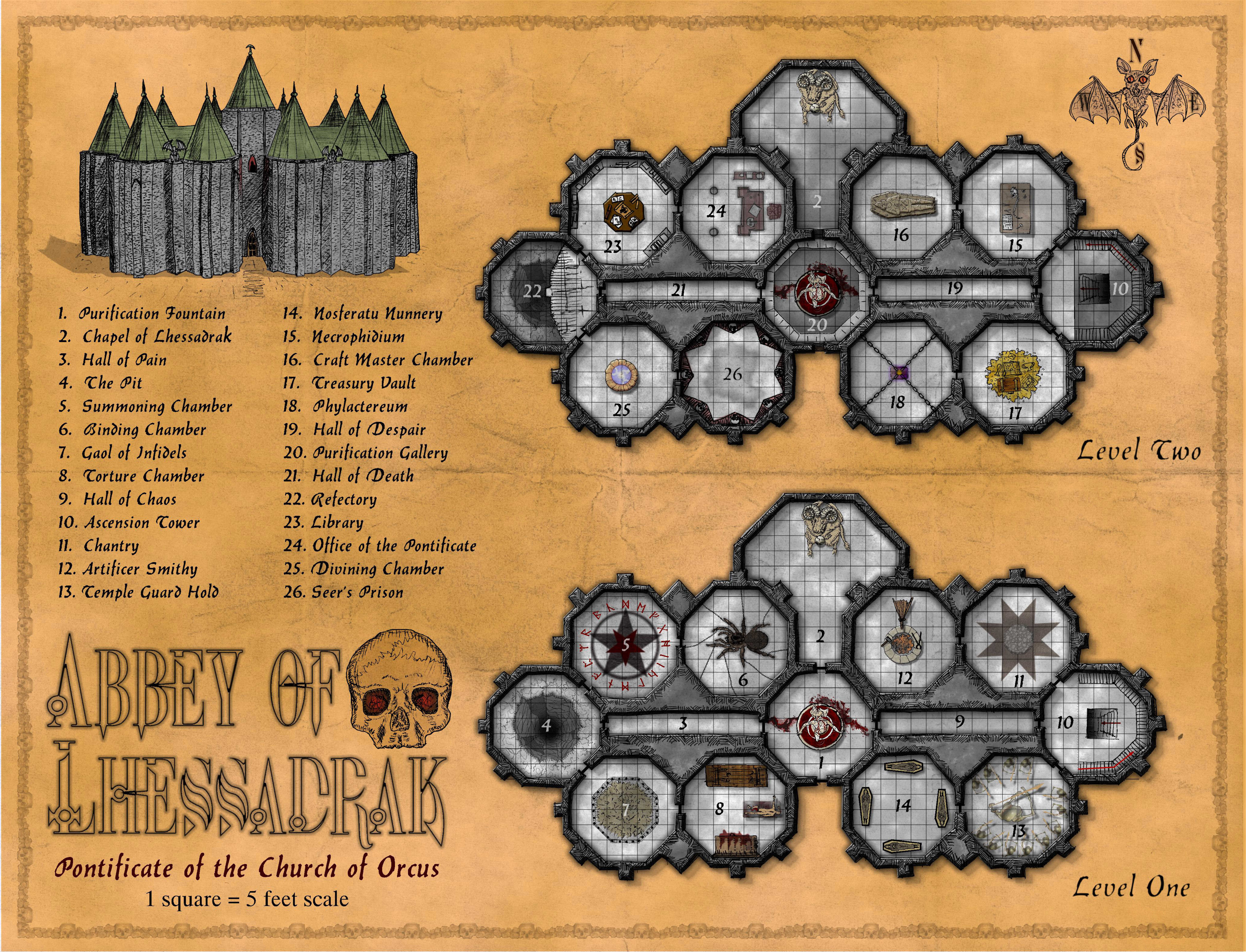 I know what you meant, but there's no word labels, yes, there are numbers, but those shouldn't detract from using this dungeon. I don't have the original file any more, just the exported JPG of the map. So I can crop and fix some things, but I can't easily pull the numbers. This should do for game play...Thanks. I ment the unnumbered version of the top one pager you posted above