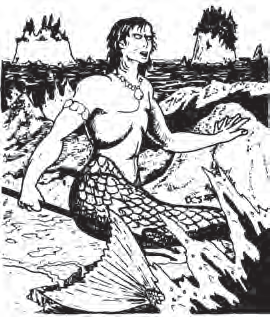 Blackmoor page 21: "With a huge leech-like mouth, large reptilian eyes, and huge ear-like growths on the side of their heads they have an almost alien appearance. On the upper body are two arm-like extensions that act as forward fins and end in two pincer-like protrusions (opposed to each other) which are used to grasp tools and weapons. The main body is reptilian in nature, covered with thick hide and has a rudimentary tail which is used much like an alligator's tail for steering and propulsion. The two rear legs are located about 2/3 of the way down the body and are long and frog like, ending in a six-toed webbed foot which provides great stability when standing on soft sea bottoms and great propulsion when swimming."