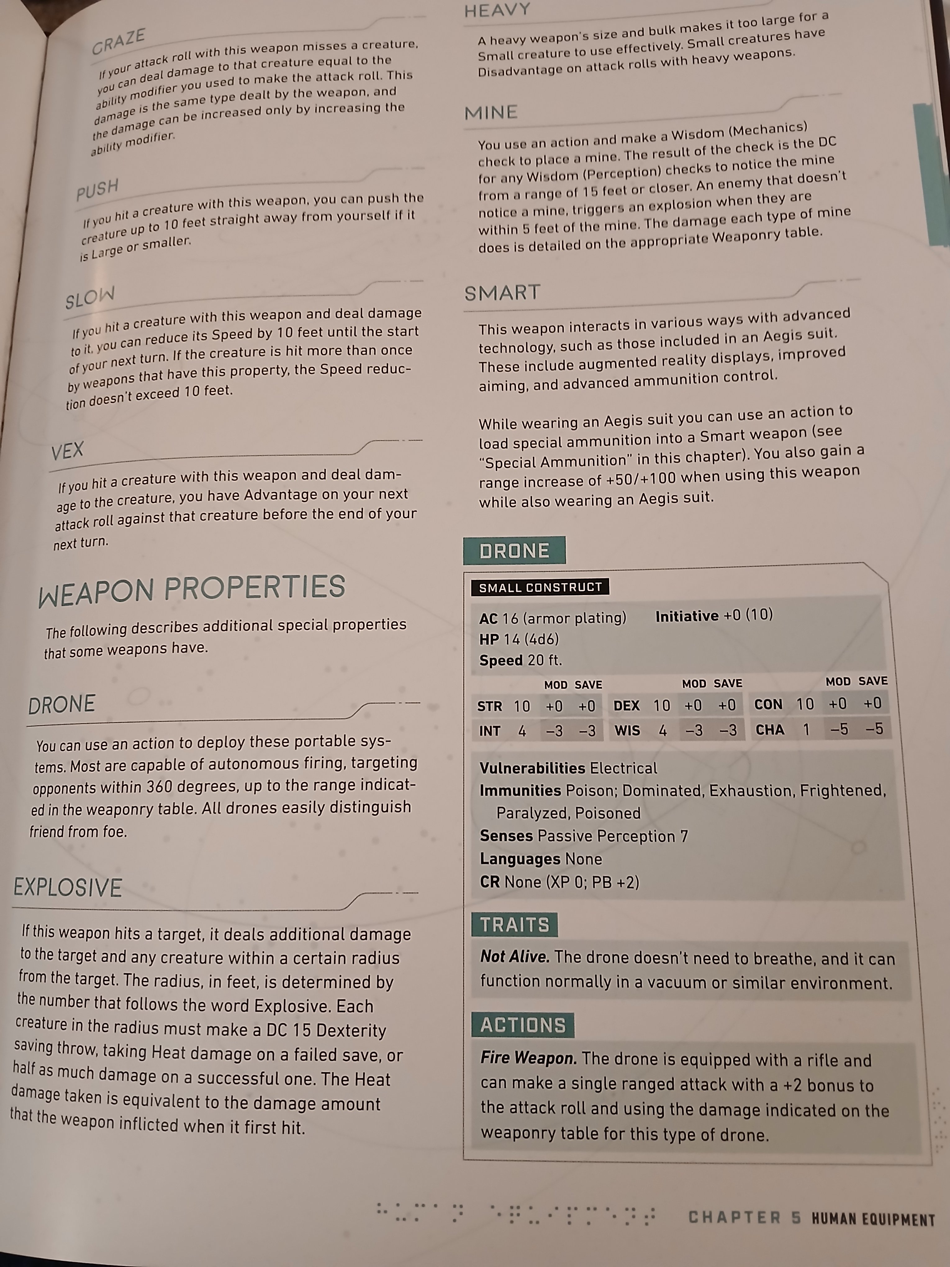 Based on a free-to-download character sheet and a description of the TTRPG, it appears that the Exodus TTRPG uses the 5E game system, but with updates to make the game sci-fi themed. The Traveler's Handbook comes with four Exodus-themed classes, with two subclasses as well as various weapons and six powerful "Traveler Dynasties" that appear to be in-game factions. Meanwhile, the Exodus Enclyclopedia includes stat blocks for various constructs, Celestials, and human NPCS, as well as new items.