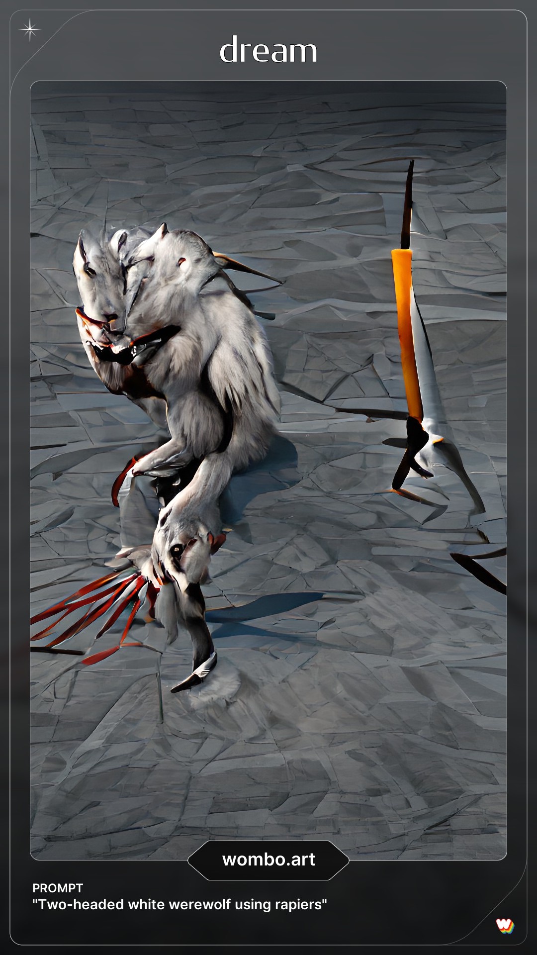 Wow. I think the two rapiers might be a little too precise for the bot, but this one is pretty good as far as two-head white werewolf goes!Better than most of mine!