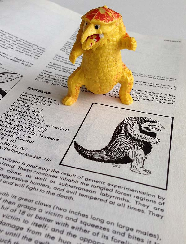 Please look behind the link for context, but TSR's original owlbear was a spitting image ripoff of the oft-mentioned toy, as show in the image. Sure, it's evolved beyond that now, but they want to prohibit others from evolving owlbear as it now stands? (...and a million other things. They can keep the mindflayer, they've used that as a mark, fair enough, and never released it as Open Game Content.)