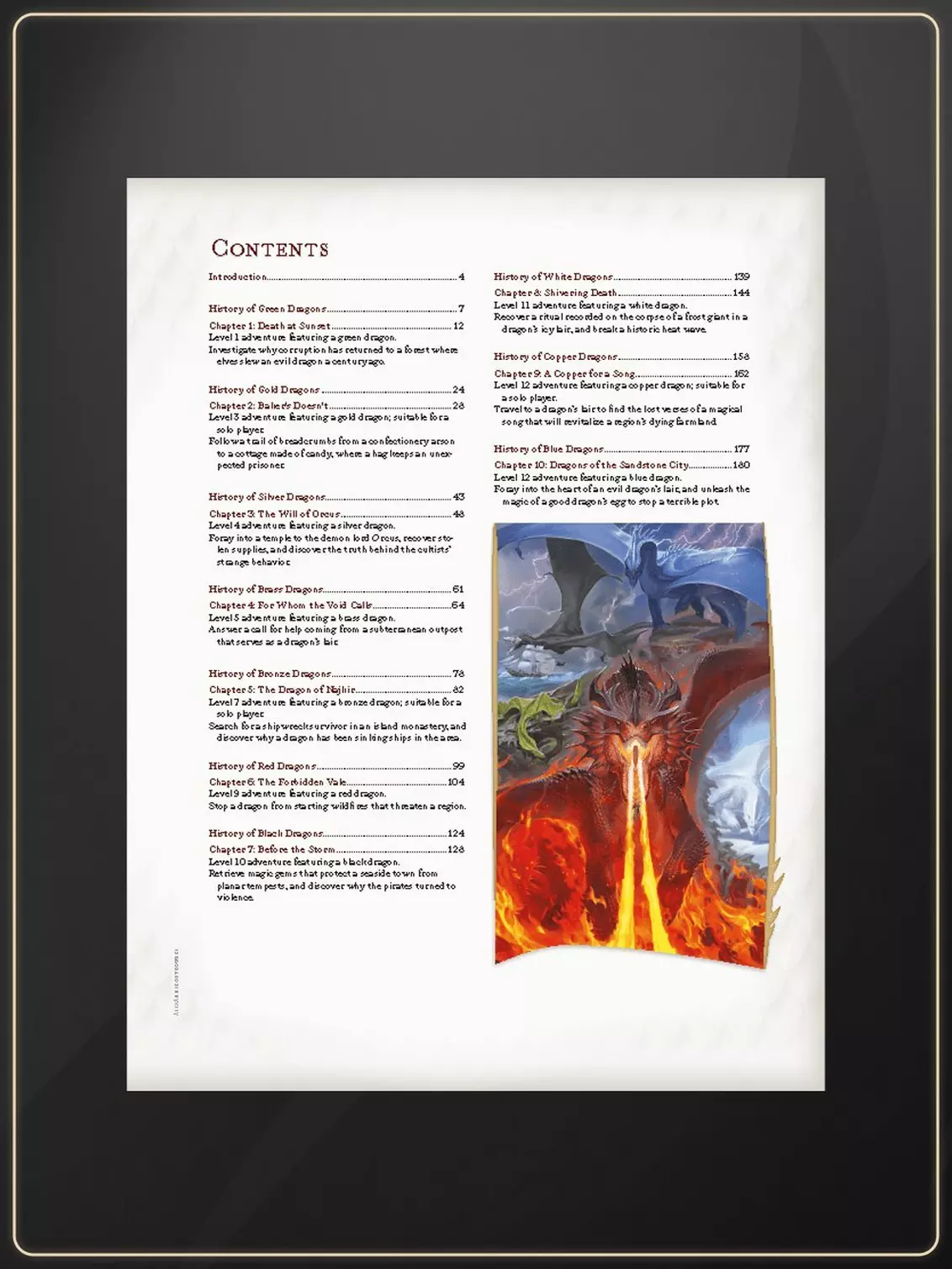 Dragon Delves contains 10 adventurers from levels 1-12, each featuring a different type of dragon. The book is due out July 8th.