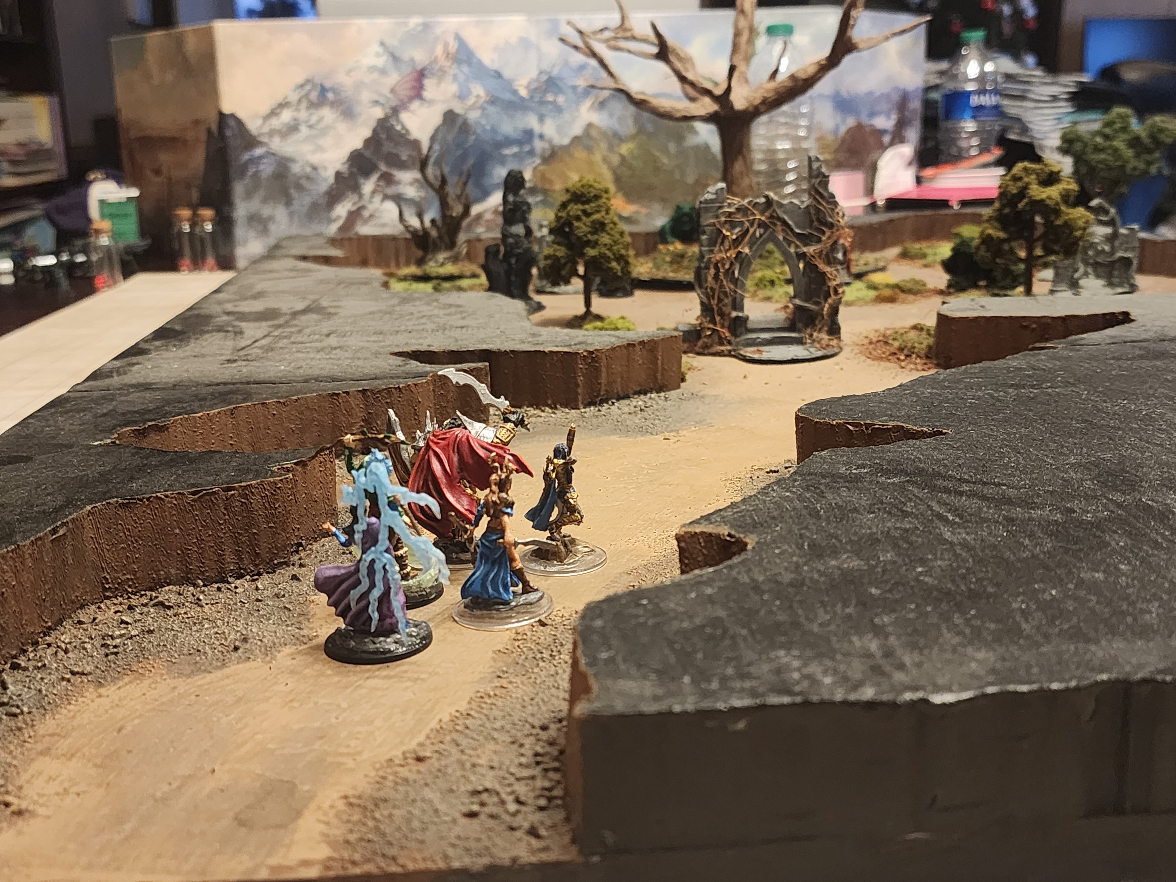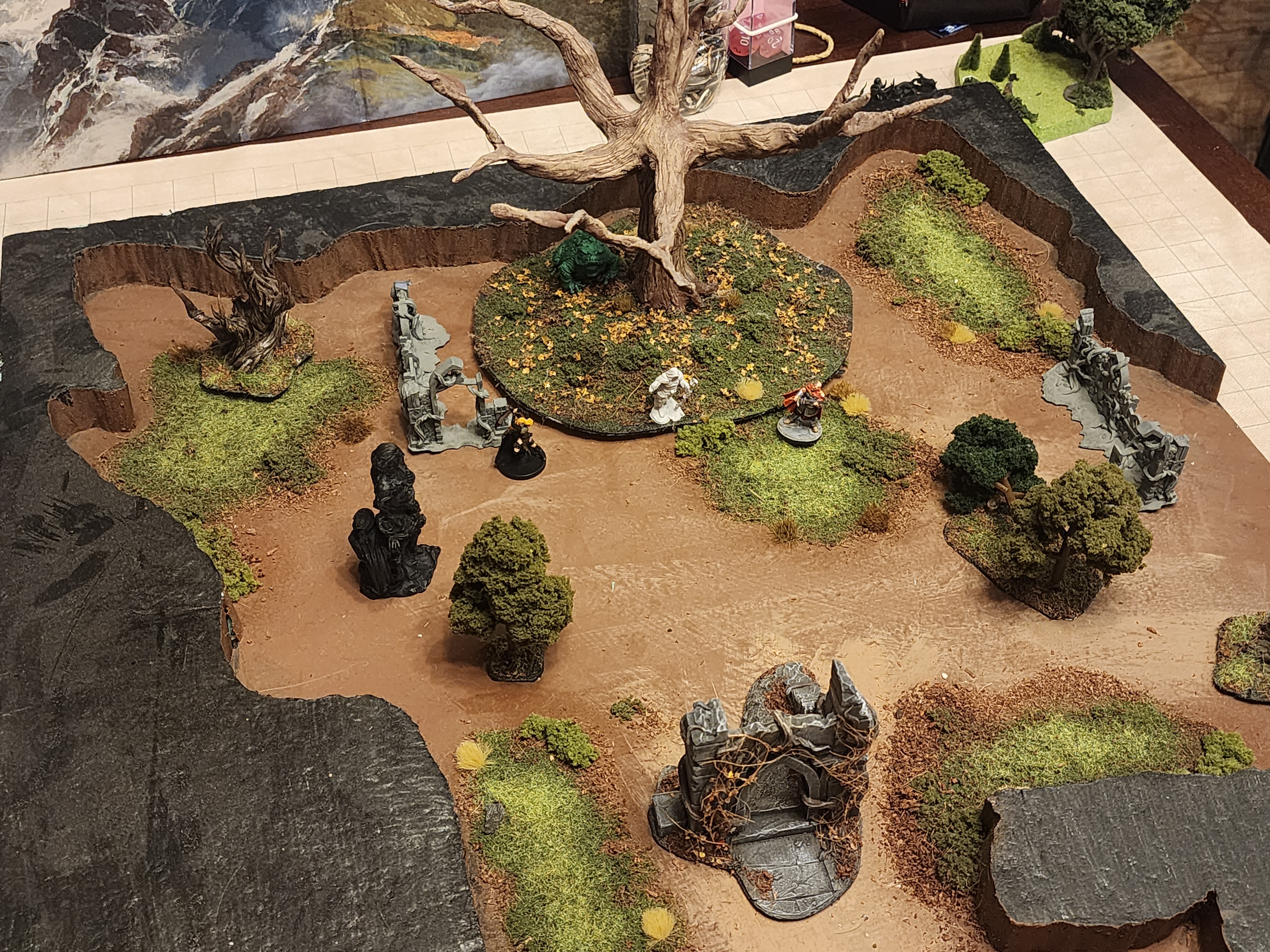 Shots from the final scene of yesterday's session, as the PCs decide to openly come down the stairs to the levels below the abbey ruins to parley with the surviving death cultists in an effort to avoid bloodshed and convince them it is in their best interest to clear out.